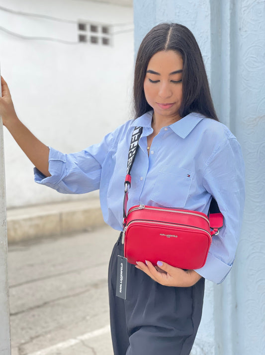 BOLSO BANDOLERA CON CORREA PARA CÁMARA Y LOGOTIPO GRÁFICO DE KARL LAGERFELD PARIS MAYBELLE PWP