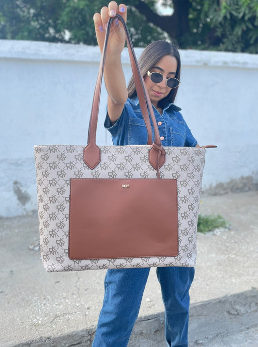 Bolso barril DKNY con estampado repetido en toda la superficie